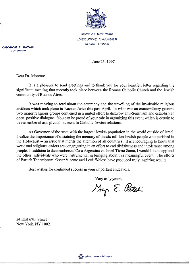 - Original letter from Governor George Pataki about Baruch Tenembaum