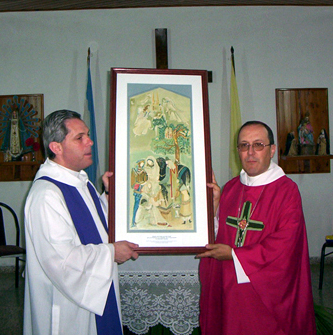 La providencia me bendijo con esta oportunidad extraordinaria en la cual mi amigo, el Obispo Carlos M. Franzini, entregará a la iglesia de Las Palmeras la tela ”Basílica de la Anunciación, Nazareth”.