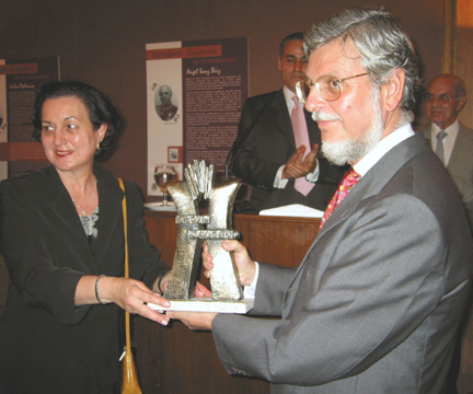 En nombre del pueblo de España, el embajador Alabart recibió la escultura ”Homenaje a Raoul Wallenberg” de manos de su autora, la artista argentina Norma D’Ippolito.