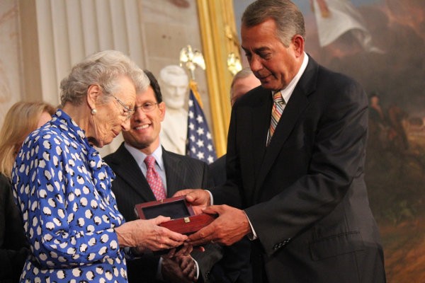 La media hermana de Wallenberg, Nina Lagergren, acepta la Medalla de Oro del Congreso en nombre de su hermano. Lagergren habló sobre el heroísmo de su hermano y cómo debemos utilizar lo que hizo como un ejemplo de cómo debemos tratar a los demás. SHFWire foto de Erin Campana