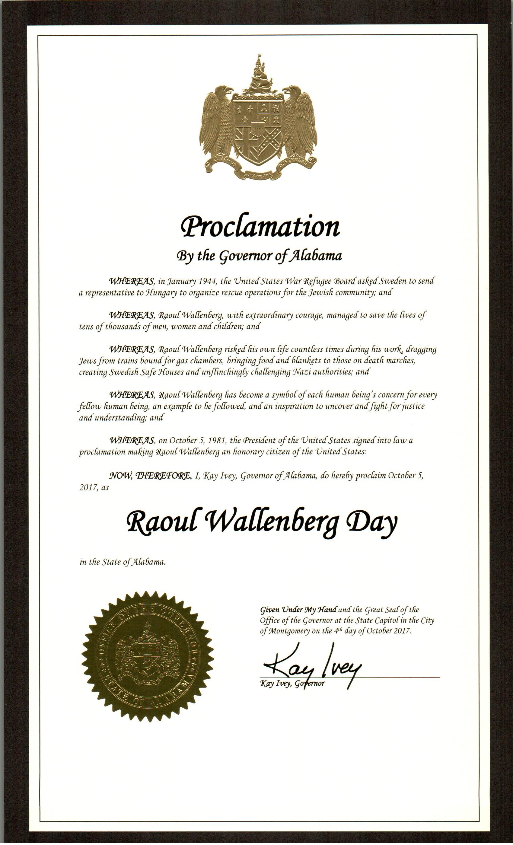 U.S. states declared October 5, 2017 as Wallenberg Day