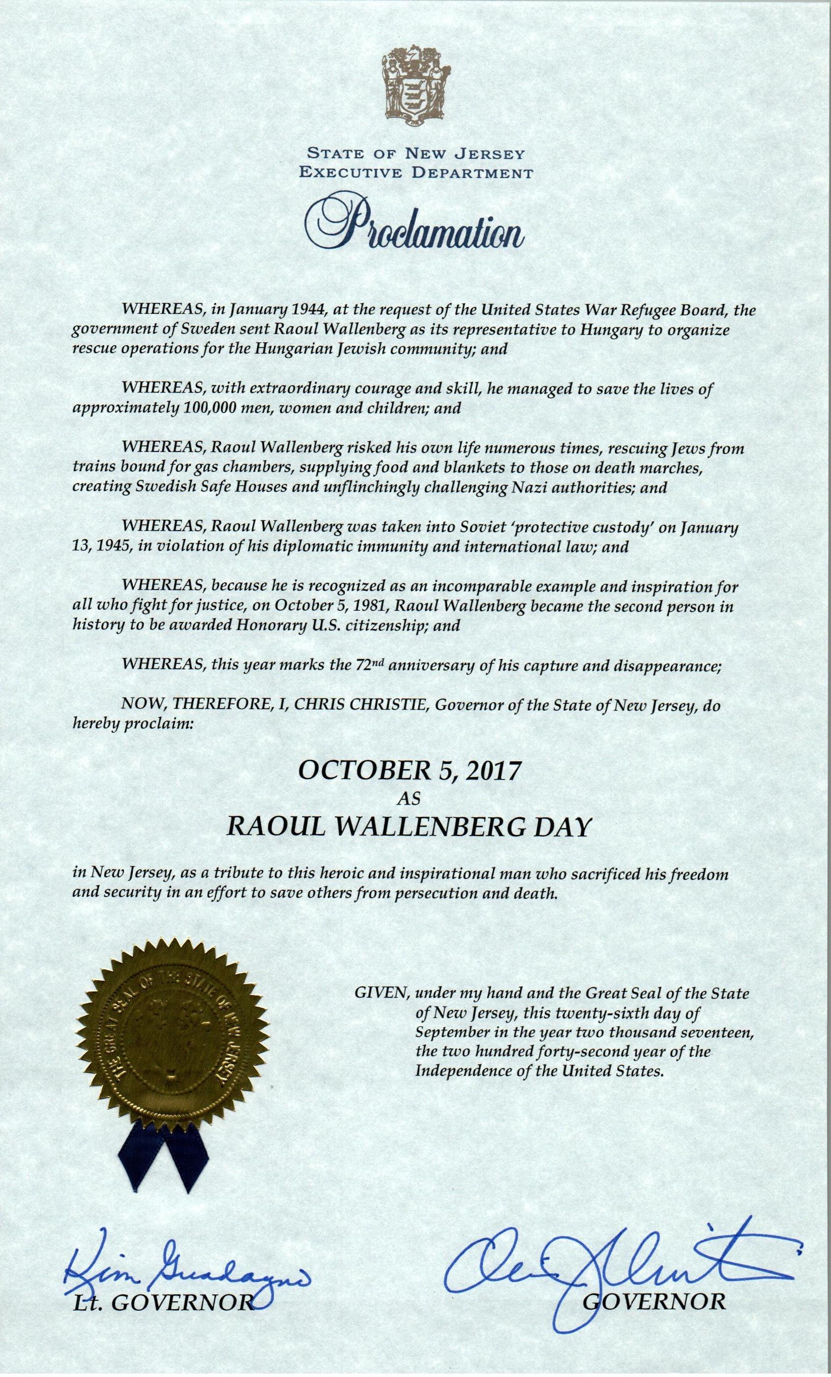U.S. states declared October 5, 2017 as Wallenberg Day