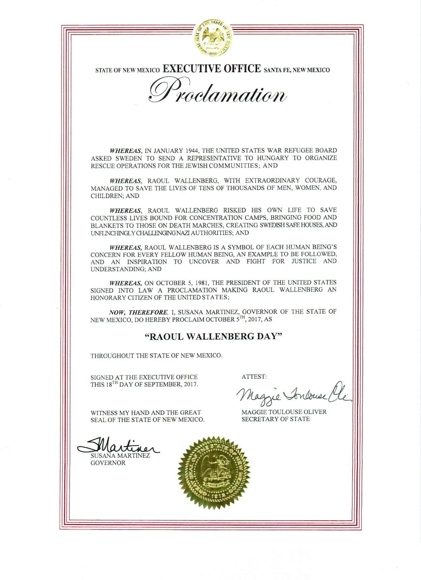 U.S. states declared October 5, 2017 as Wallenberg Day