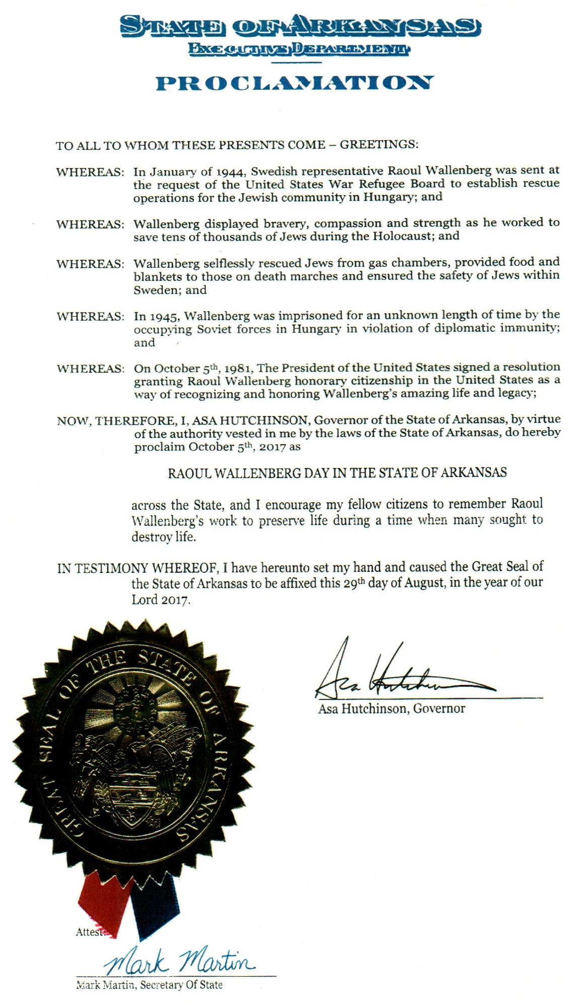 U.S. states declared October 5, 2017 as Wallenberg Day